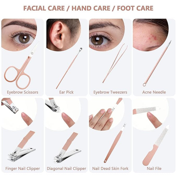 Professional Manicure Set - 21 in 1 Nail Care Kit Stainless Steel Clipper Kit Pedicure Kit for Women - Travel Pink