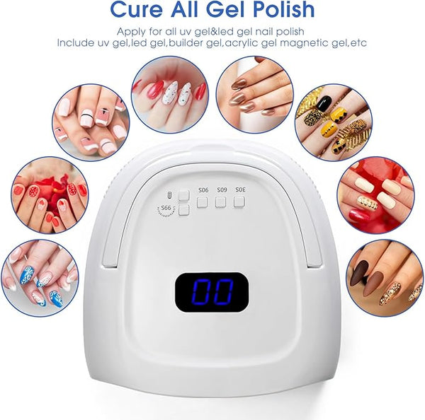 More efficient than other common nail lights, 50% less than the average drying time. Quickly curing of all types of uv gels, extension gels, led gels, nail builder gel, nail sculpture gel.