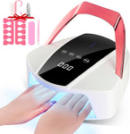 The UV nail lamp has a Large LCD screen and sensitive touch screen buttons, it shows drying time and battery charge.