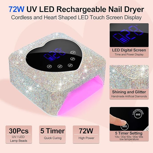 UV LED Nail Lamp, 72W Rechargeable Cordless Nail Lamp Nail Dryer Gel Polish UV Nail Light with 5 Timer ,Quick Dry Curing Lamp for Salon & Home