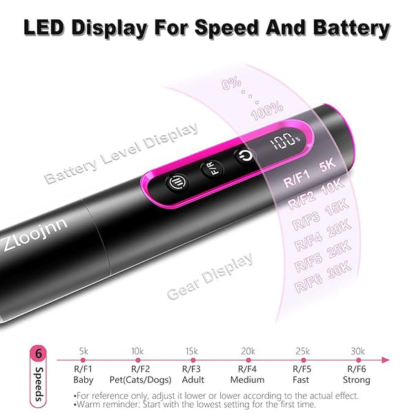 The gear memory function remembers your usage habits, perfect experience, suitable for beginners and professionals: after shutting down, restart the machine and use it, the last used speed will be displayed.