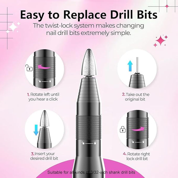 The knob-type lock design for replacing drill bits is simple, convenient, labor-saving, and suitable for all kinds of 3/32-inch shank drill bits.