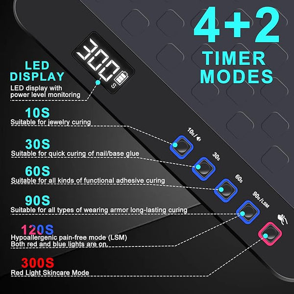 Product descriptionLiddy Art 96W Professional Cordless UV LED Nail LampHow to use this nail tech lamp?This gel led nail lamp has 4 timing modes and LCD screen, which can observe...