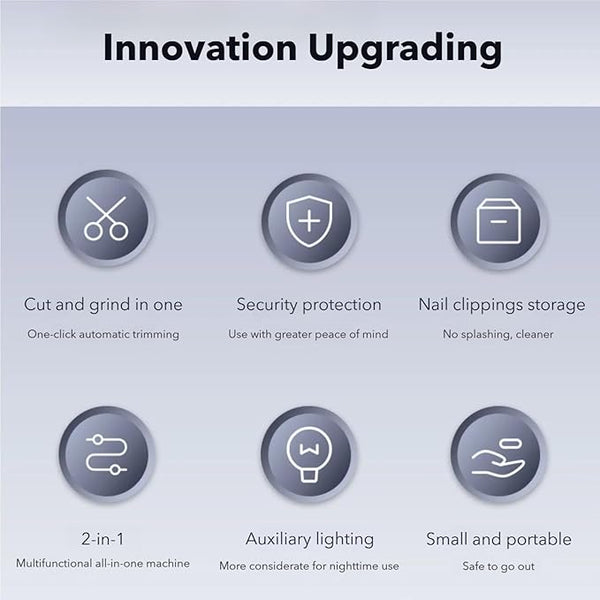 Product descriptionSpecificationsName:smart nail clipperWeight:120gMaterial: ABS+alloyColor: white/pink/purple/grayPackage Contents1pc *Electric Nail Clipper1pc*UsbCharging cable1pc*Small brush1pc*Replacement grinding head100pcs*Cotton swabsNotes1. Due to manual measurement, please allow slight measurement deviations.2. Due to different monitors and lighting...