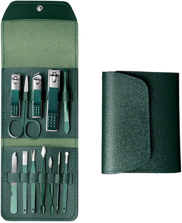 Manicure Cutters Nail Clipper Set Portable Stainless Steel Ear Spoon Nail Clippers Pedicure Nail Scissors ToosGreen SET03