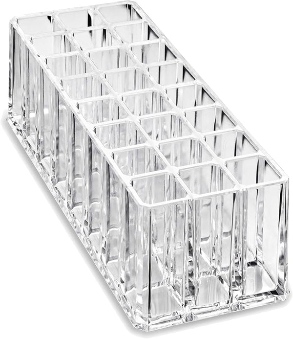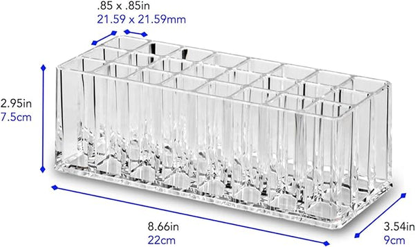 This BY ALEGORY premium acrylic lip gloss organizer comes with 24 individual spaces for storing tall lipgloss, lipsticks and various beauty products.