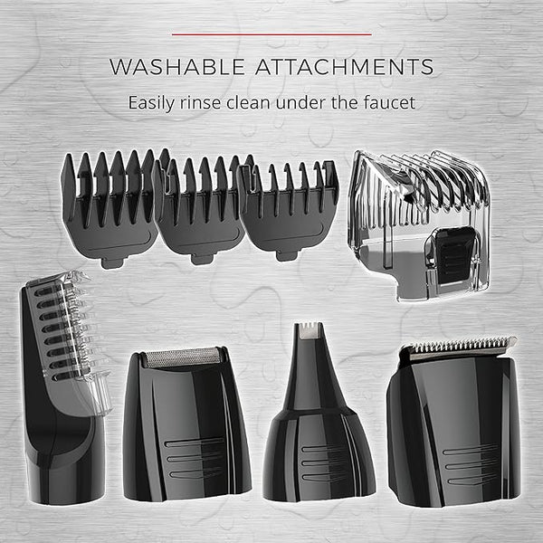 The Head-to-Toe Grooming Kit solves all your grooming needs. Advanced rechargeable power delivers up to 70 minutes of cordless runtime and drives the self-sharpening, surgical steel blades to deliver precise and comfortable trimming. Versatility comes standard with the included attachments: vertical body hair trimmer; foil shaver; nose, ear, and detail trimmer; hair clipper comb; and beard and stubble combs. All the attachments are easy to wash under the faucet, making it easy to trim, detail, and shave unwanted hair anywhere on your body.
