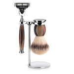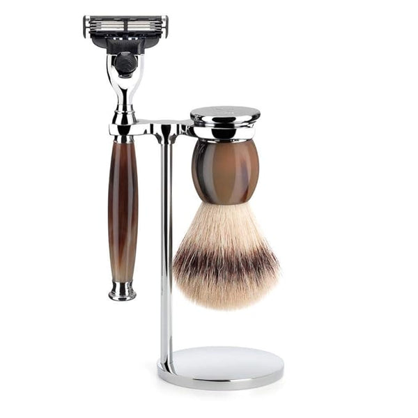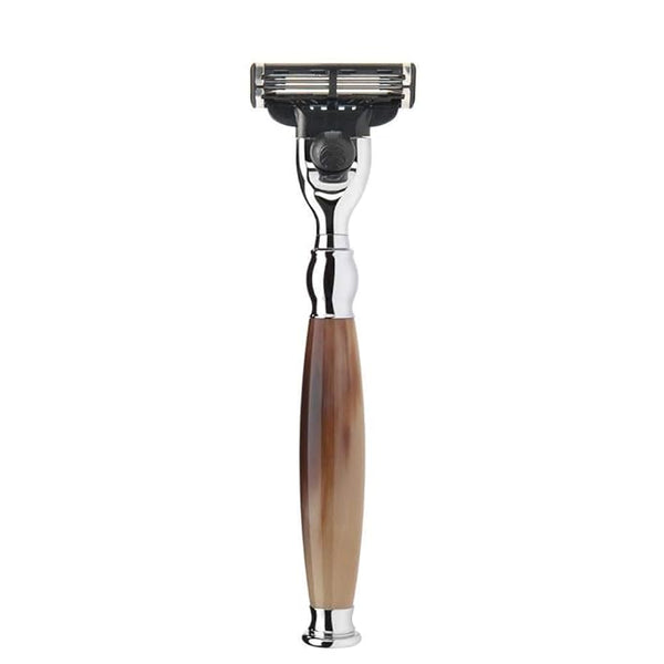 MUHLE Brwon Horn Silvertip Fibre Safety Razor (Closed Comb) Shaving Set