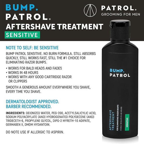 Bump Patrol Aftershave Treatment is barber and dermatologist recommended and even works for bald heads and fades. Use on your head, face, neck, underarms, legs, bikini area, anywhere you remove hair. Use after shaving, waxing, electrolysis, laser, or cream hair removal.