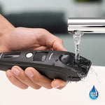 An easy-open water drain allows running water to flow freely through the blades for fast, simple cleaning or hair clippings.*