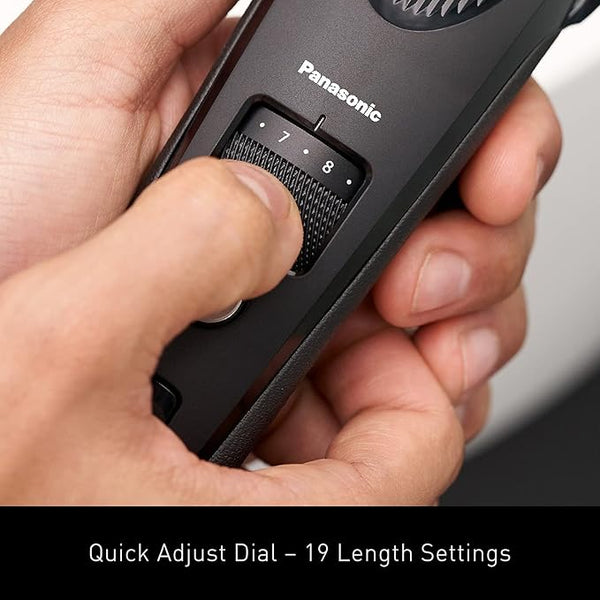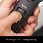 Create and maintain your style with the adjustable beard trimmer's quick-adjust dial. Positioned on the handle, the dial adjusts between 19 individual length settings from 0.5mm to 10mm when used with the comb attachment. Trimming without the Panasonic snap-on attachment trims to approx. 0.5mm.