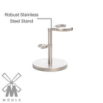 It is important to look after your razor and shaving brush correctly and increase the longevity of your item. After each shave, your razor will need to be rinsed clean in preparation for your next shave. If you use a shaving brush, this will also need to be rinsed thoroughly and hung in an upside-down direction to dry. To achieve this, Muhle offer a range of stylish chrome plated shaving stands. Choose from: