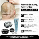 Our iconic design, engineered with bi-directional blades that glide over the head, arms, legs, and body with riveting precision. Self-stropping, self-cleaning, and a shaving staple for a clean cut. Outlives and outperforms your typical razor with ease.