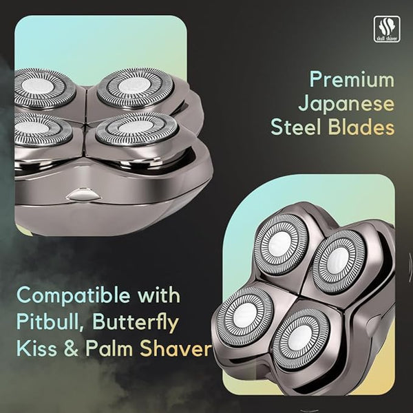 Skull Shaver Carver PRO blades let you shave faster than our previous designs. It's multi directional rotary shaving heads let you shave in any direction. Shave up, down, left, right, whatever works best for you.