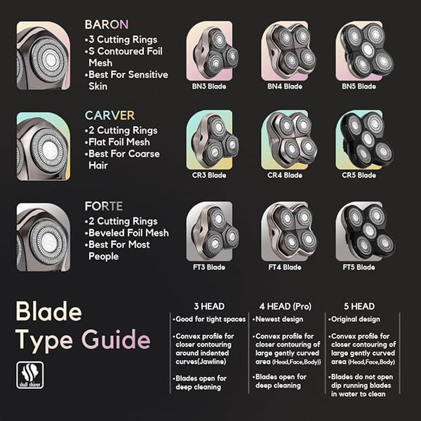 Product descriptionSHAVE FASTER | SMOOTHERSkullShaver BladesSUPERIOR PERFORMANCESkull Shaver Carver PRO blades let you shave faster than our previous designs. It's multi directional rotary shaving heads let you shave in any...