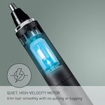 A high-performance 9400 cpm motor drive generates 300% more power* to effortlessly cut and trim even the thickest, coarsest nose and ear hair, eyebrows and facial hair.