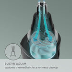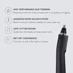 As you trim hair, a powerful micro vacuum system automatically pulls in cut hair, to prevent hair from scattering in and around the nose, for comfort and faster, easier clean-up.