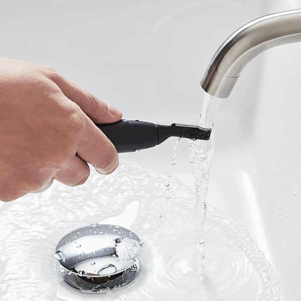 Safely trim in or out of the shower, with or without foam.