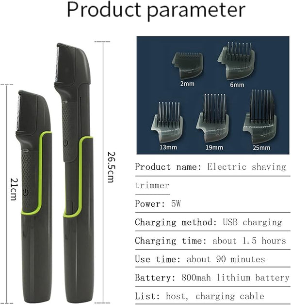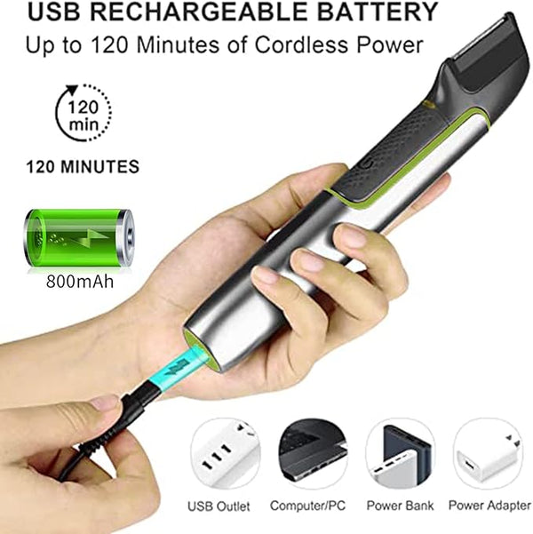 Rechargeable Body Trimmer for Men Skin-Gentle Wet and Dry Shave Hair Trimmer for Head & Body 6 Lengths 5 Combs and Case Electric ShaverUSB Charging Type