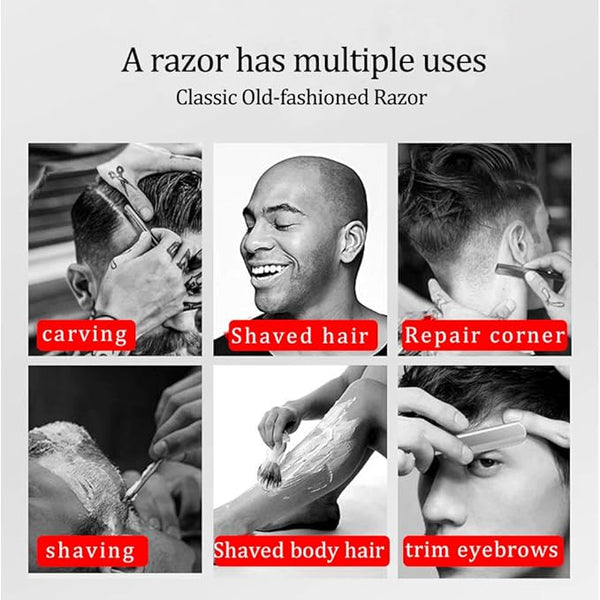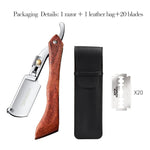 manual razors redwood handle shaver men's shaving razor professional barber Hair cut razor change blade type shaving knife Professional Straight Edge Razor with 20 both Edge Blades stainless blades