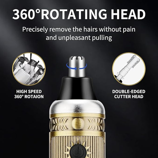 Package includes a replacement blade to extend the life of the nose hair trimmer. The head is removable and washable, with a cleaning brush for easy removal of hair residue.