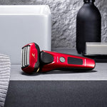 A full, one-hour charge provides up to 45 minutes of use. A 3-minute quick charge provides one shave. The LED display shows status and battery life.