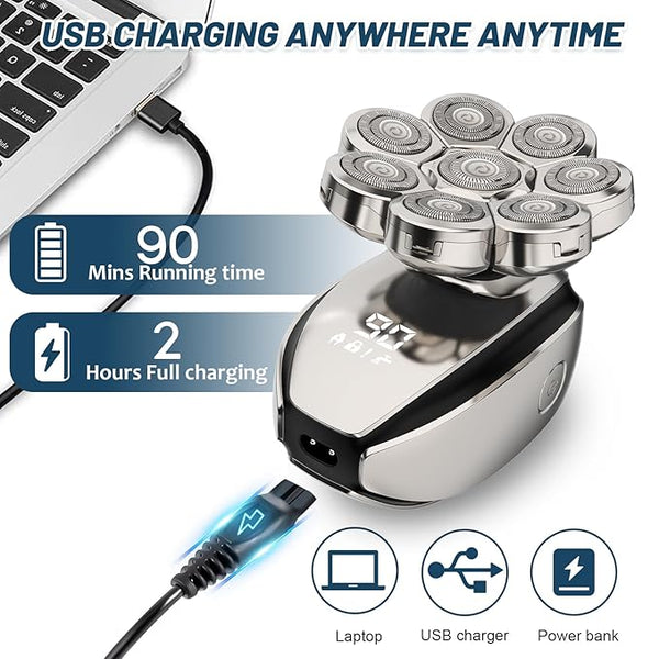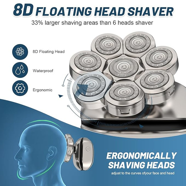 Electric Head Shaver for Bald Men, 8 Heads, 6-in-1 Head Razor Kit