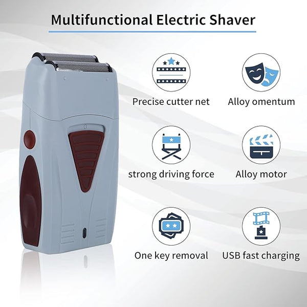 This electric hair clipper features a double head reciprocating shaver designed for professional precision trimming. the sharp blades ensure smooth and effortless cutting for both hair and beard, can be used to shave beard and hair quickly .