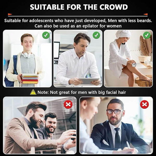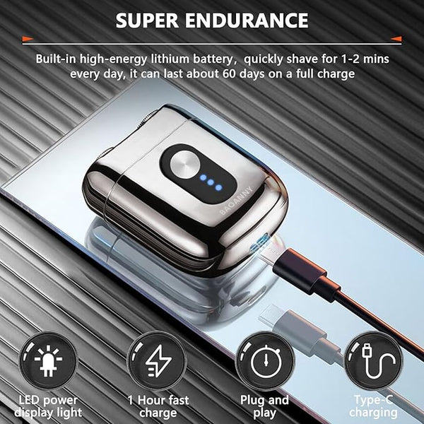 Smaller than your old shaver.Small enough to take anywhere. Comes with a leather storage bag, this mini shaver is very suitable for business trips, compact and portable