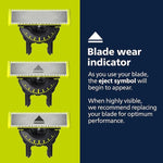 Stainless steel blade that lasts up to 4 months of use©÷ to keep that fresh feel. When the eject icon will appear on the blade, the blade performance may no longer be optimal. It is time to consider changing the blade for the best shaving experience.