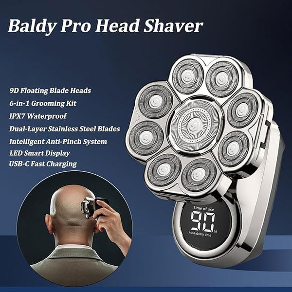 Pro Head 9.0 Shaver IPX7 Waterproof 6-in-1 Grooming Kit for Men Smart LED Display 9D Floating Blade Heads for Beard Hair Nose Hair Body Hair