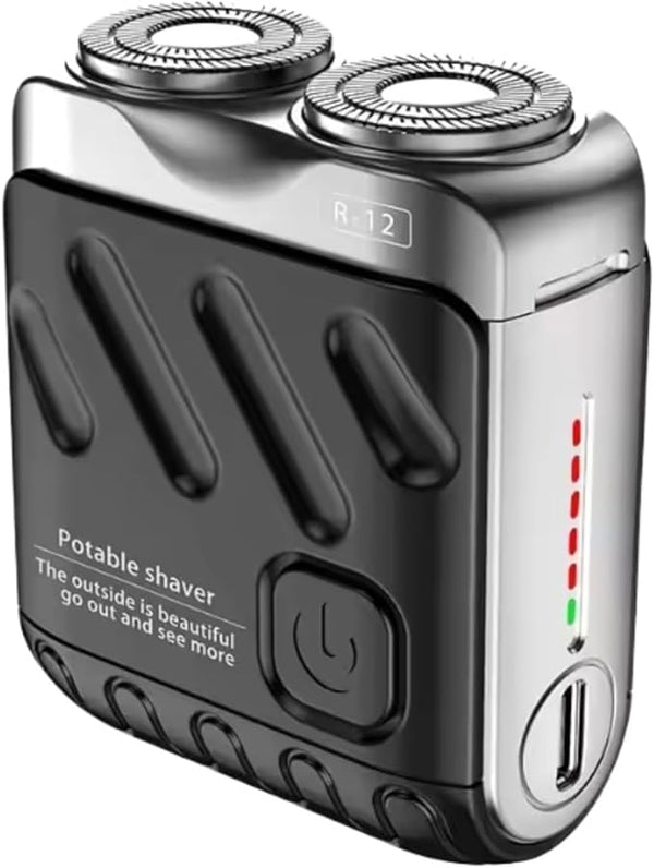 Portable Rotary Dual Ring Electric Shaver for Men Travel Mini Rechargeable Pocket Razor with Double Floating Magnetic Blade Head(Black)