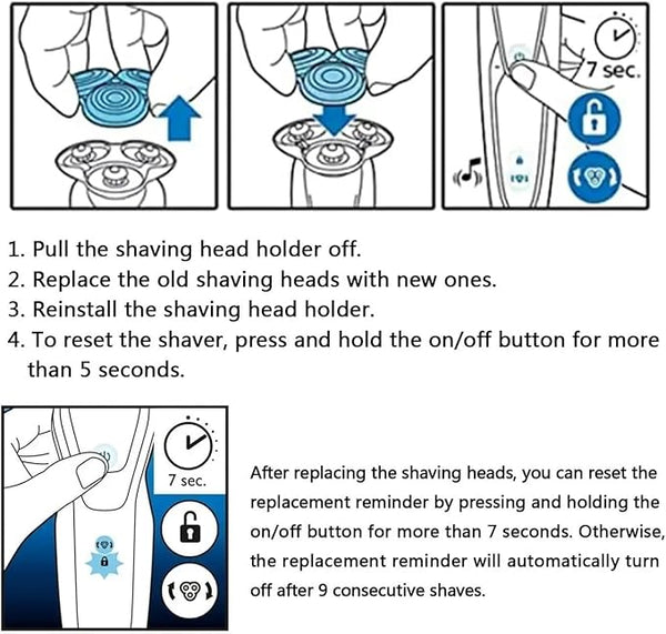 SH71 Shaving Head Razor Blade KitCompatible For Philips NorelcoSeries 7000 S7782 S7788 Series 5000 Shaver Replacement Accessories(6pcs)