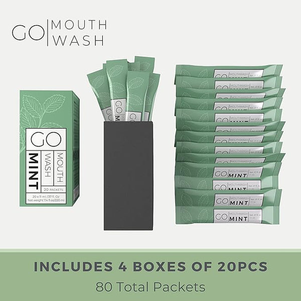 Say goodbye to messy spills and stained clothing with our revolutionary clear mouthwash formula! Our clear, powerful, yet gentle formula is free from harsh ingredients, artificial dyes, and colors that can ruin your clothes. Go Mouthwash travel packets are convenient and 99.9% alcohol-free, gluten-free, and cruelty-free.