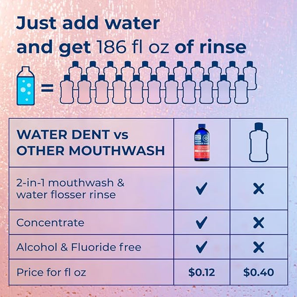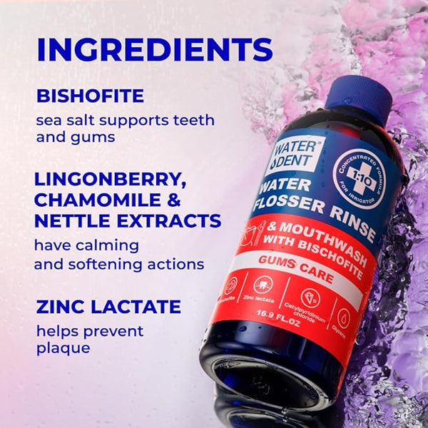 Water flosser rinse with active ingredients helps reduce the risk of caries, helps keep gums healthy, freshens breath, and helps reduce plaque as well.