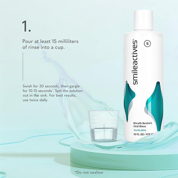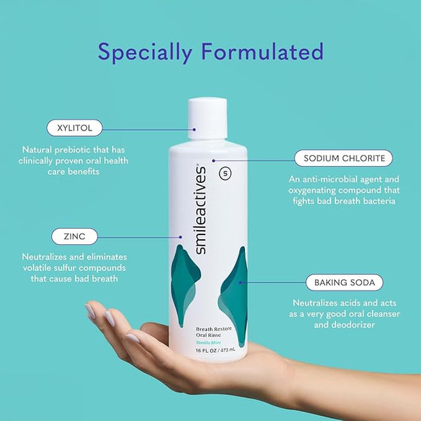 Smileactives Breath Restore Oral Rinse Adults Mouthwash for Bad Breath and Gum Health Promotes Oral Care Healthy Mouth and Long Lasting Fresh Breath Sugar and Alcohol-Free Vanilla Mint 16 fl oz