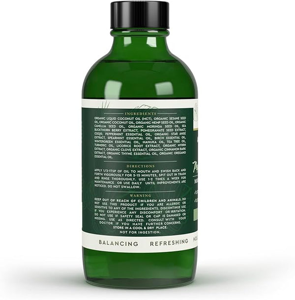 Reach deeper into your oral space to battle odors and reduce buildup in just 5-15 minutes daily. Our organic oil pulling for teeth and gums features a highly concentrated formula - just 1/2 teaspoon flushes out the bad stuff.