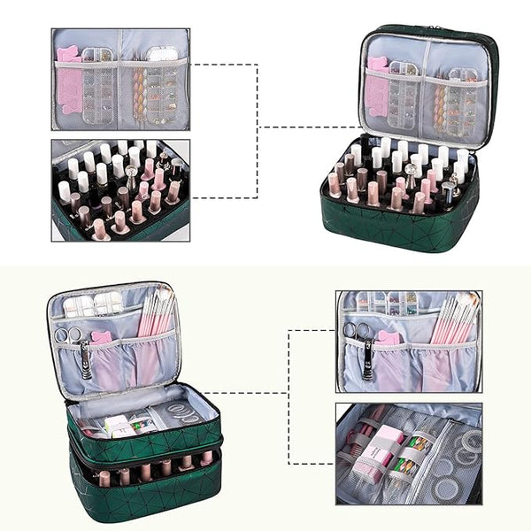 Our KGMCARE Double-Layers Nail Polish Organizers and Storage is designed for slove your problem. This nail polish travel bag is amazing. You can take your nail polishes and polygels to girl nights whenever you hang out with friends and this bag makes it so much easier and more organized to do that.