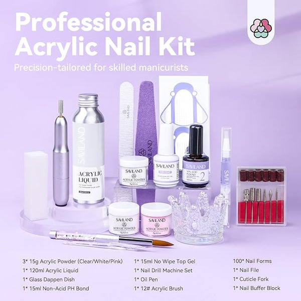 Saviland all-in-one acrylic nail kit has various manicure tools that you need, they can help you create nail art easily.