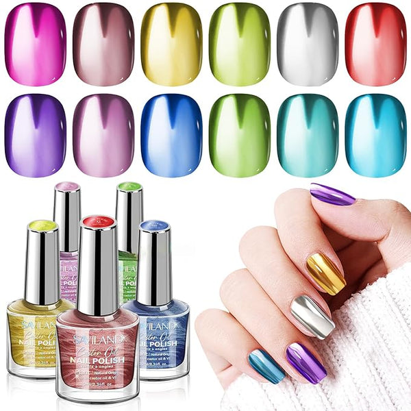 Mutil-Colors: 12 Chrome Colors with Base-Top Polish Coat.