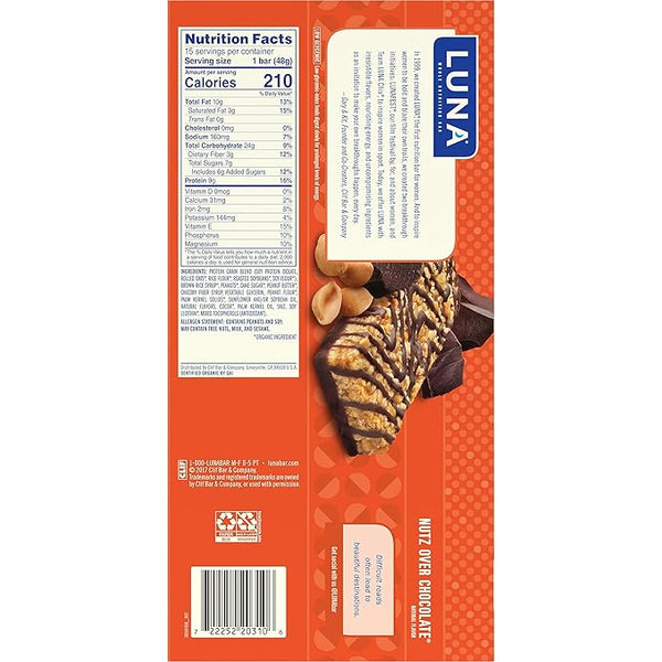 LUNA Bar Nutz Over Chocolate Flavor Gluten Free Snack Bars, Non-GMO Protein Bars