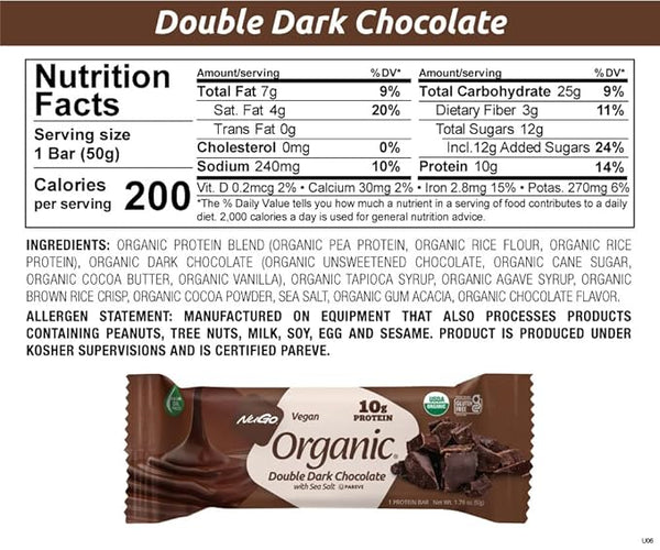 NuGo Organic is coated in Real Dark Chocolate and contains 10g of organic plant-based protein