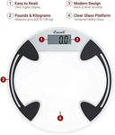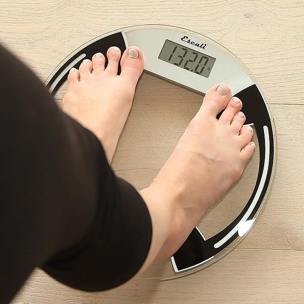 The Escali Clear Glass Bathroom Scale features an impact resistant safety glass platform, sleek black accents and high weight capacity.