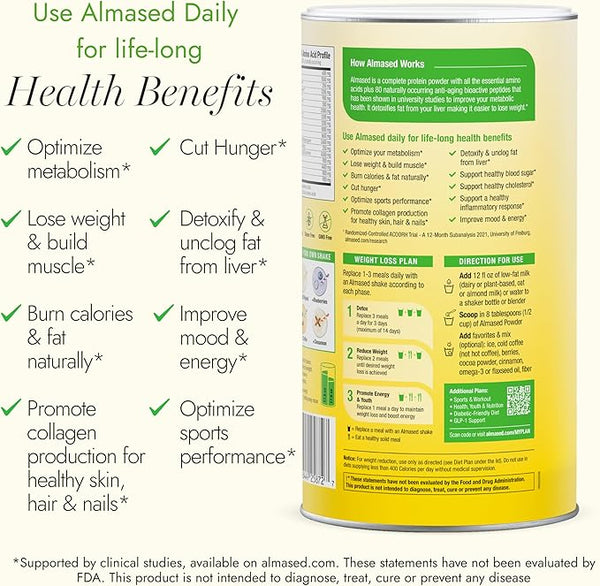 From the manufacturerAlmased - Multi Protein Powder - Supports Weight LossAbout AlmasedProduct FeaturesAlmased's unique formula contains the key ingredients for successful weight loss, optimal health and maximum energy: High-quality fermented...