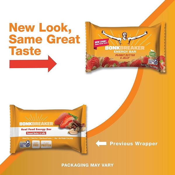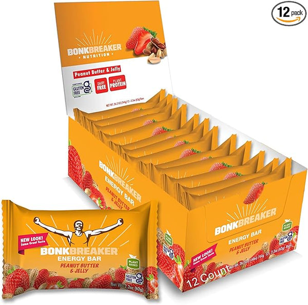 Bonk Breaker Real Food Energy Bar Gluten-Free 8g Protein Peanut Butter and Jelly Flavor 62g Bar (12 Pack)