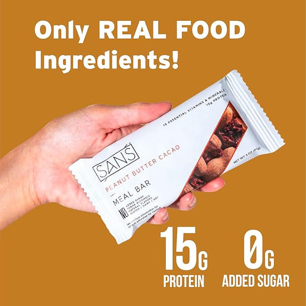 Made from only REAL FOOD, each SANS Meal Bar is free from added sugars, sugar alcohols, chemical stabilizers and ¡°natural¡± flavors.