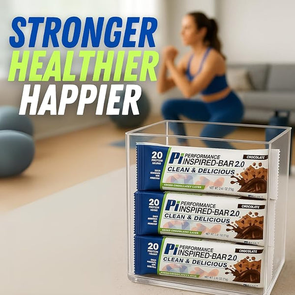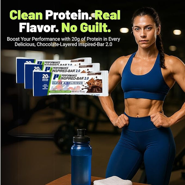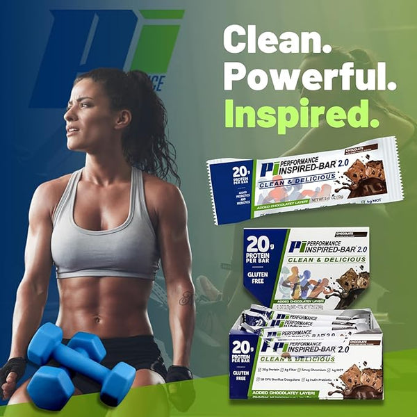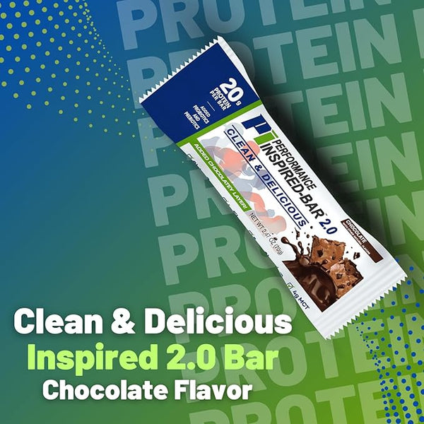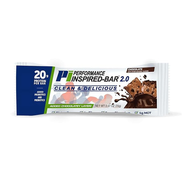 Performance Inspired Nutrition - Protein Bar 2.0 ? Contains: 20G Protein - 6G Fiber - 4g MCTs - 1 Billion CFU Probiotics ? 1G Prebiotics - G Free ? BIG 70g bar - Chocolate 12-Ct. Box