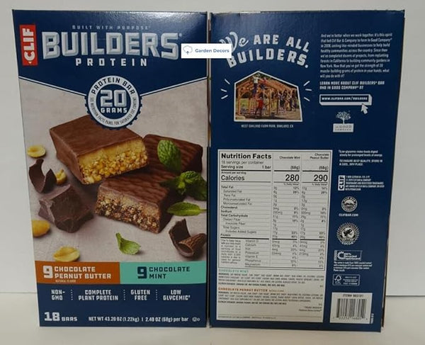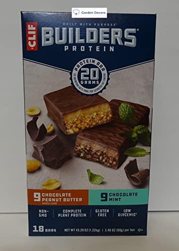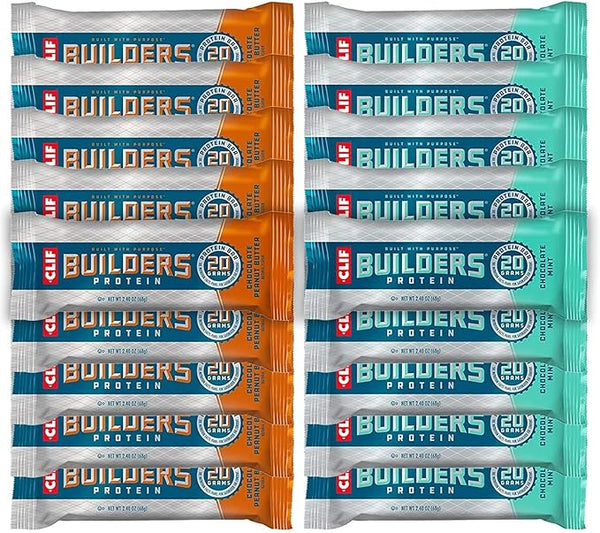 Clif Bar - Builder's Protein Bar Variety Pack 20g of Protein (Chocolate Mint & Chocolate Peanut Butter) - 18 Count