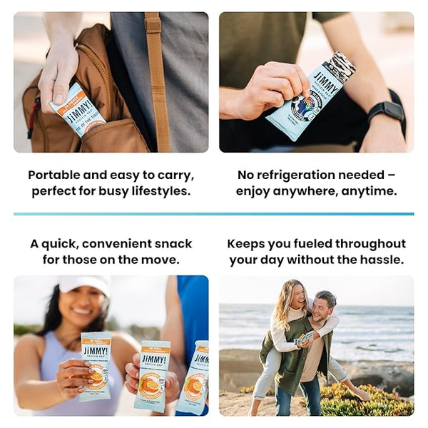 In a world full of protein bars, JIMMY! stands out by focusing on what matters: functional nutrition without compromise. We refuse to settle for chalky, bland bars packed with sugar and artificial ingredients. We believe healthy fuel should taste amazing. Deliciously Crafted: Our bars are chef-inspired, ensuring a satisfyingly delicious snack you'll actually crave. Uncompromisingly Clean: You won't find junk on our labels. We are proudly gluten-free and non-GMO, with absolutely no artificial sweeteners, ever. Truly Functional: We pack our bars with high-quality protein and ingredients that support your entire day?from muscle recovery to mental focus. 5342 / 6000 Standard Four Image & Text Headline JiMMY! Protein Bars go beyond basic snacking. Each bar is a powerhouse of functional benefits