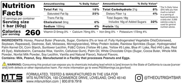 Product descriptionOutright Peanut Butter Protein BarThe Main IngredientsDelicious FlavorsAmerican MadeOutright Bars by MTS Nutrition are an all-natural whole food protein bar that is perfect for everyone. We took simple ingredients...